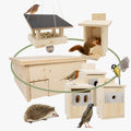 Waldgarten-Set (Nistkasten Meise, Star & Rotkehlchen, Vogelhaus, Igelhaus & Eichhörnchen-Futterhaus)